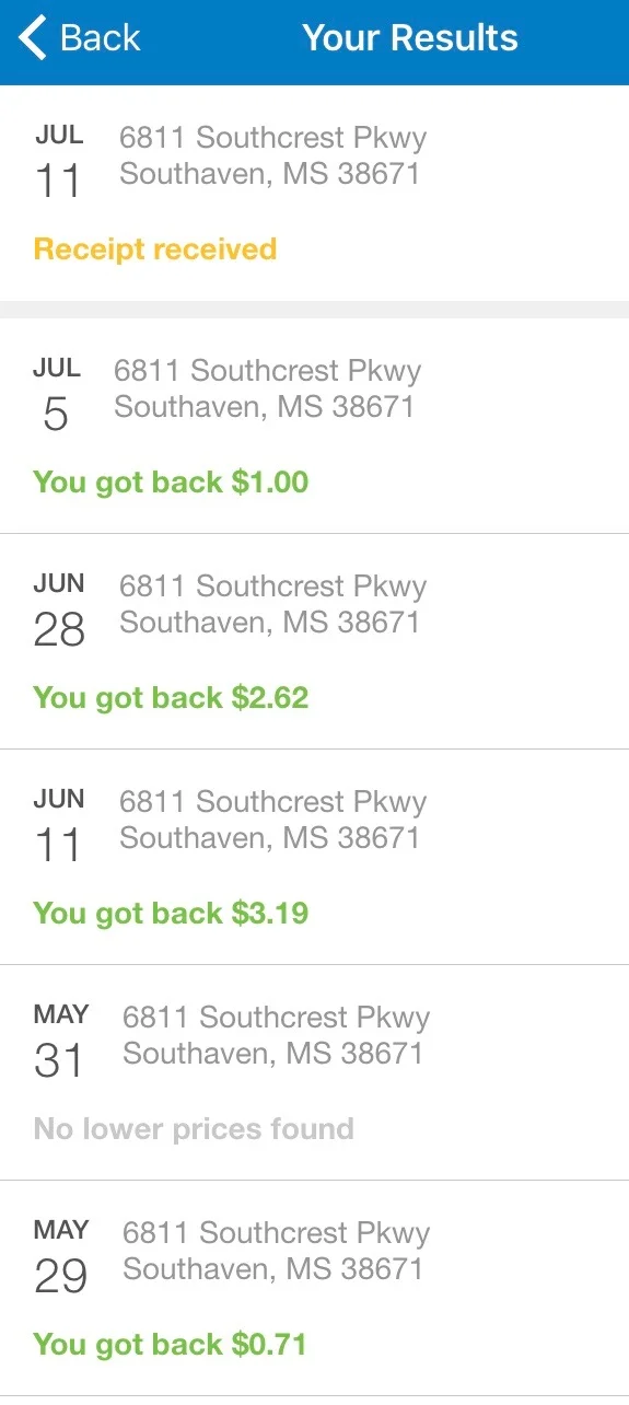***If you click Your Results, you can see the status of your purchases. You can see in the photo below that the receipt from my purchase yesterday has been received. Once they process it, I will be able to see how much I get back. I think it usually takes about 24 hours. You can see how much I got back from my other grocery shopping trips below that.