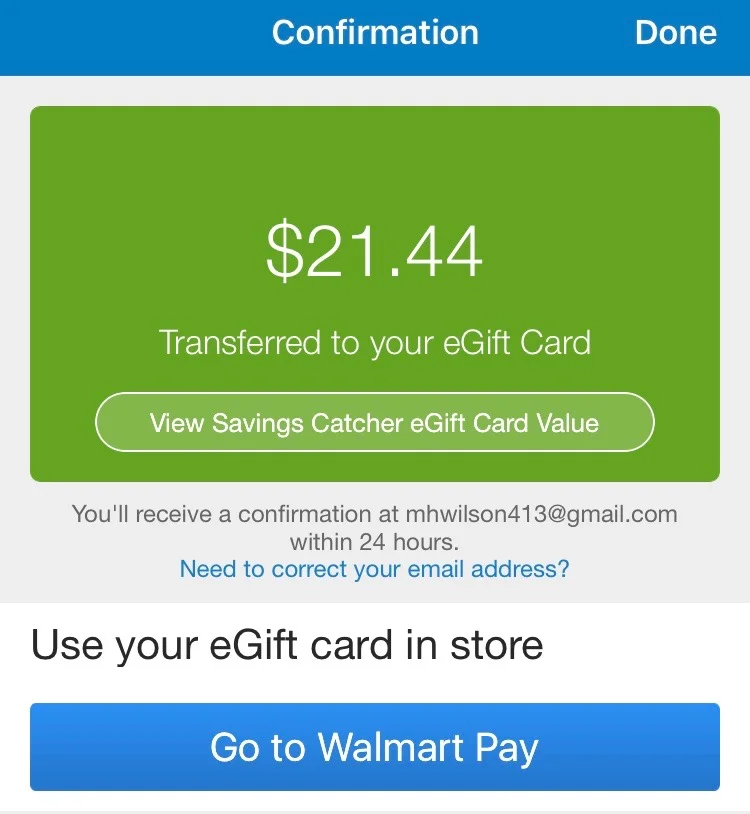 ***When you want to redeem your money, you simply click Transfer to eGift Card, like you can see right above this photo and Walmart sends you an email with a code that the cashier scans when you want to use your Reward Dollars! Once you download the app, you will see that it is actually very easy to use!