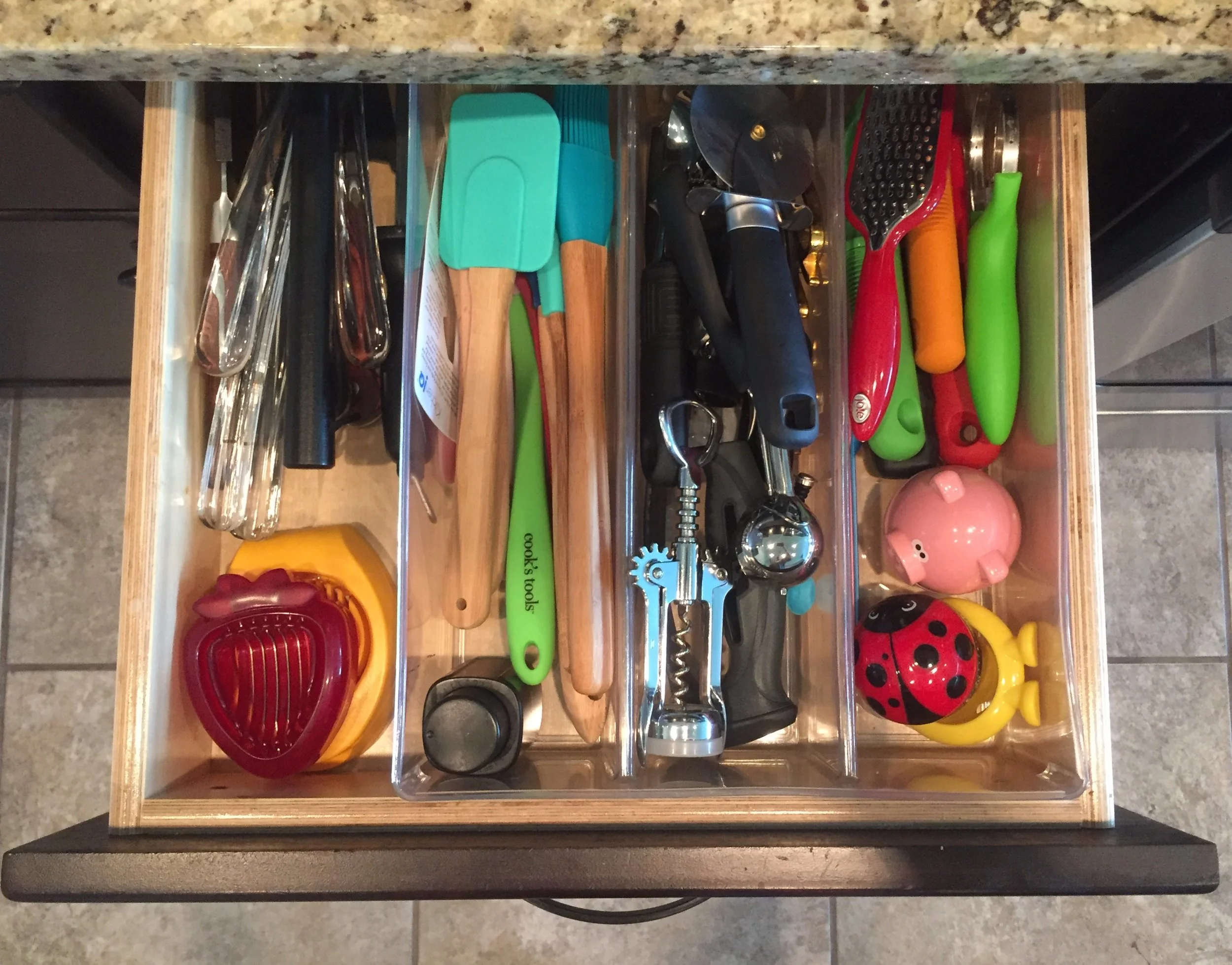Organizers for your drawers- At our old house, Parker and I just threw all of our cooking tools in a drawer. When we moved here, I wanted to change that, so we found some acrylic drawer organizers. I'm here to tell you they are life changing. For someone who loves organization, having our kitchen items sorted and organized (and clean) brings me great joy!
